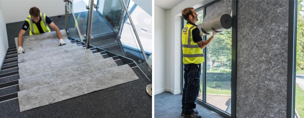 Proguard Protectall Fleece is arguably the most versatile temporary protection product. It provides excellent impact protection and is suitable for hard floors, walls, windows, ceilings, metal - virtually any surface! This premium fleece has a self adhesive film on the underneath and anti-slipping fleece on the top face. It stays securely in place, does not require tape or additional fixing and leaves absolutely no residue on removal.