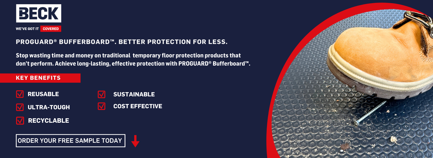 Designed with performance, convenience and sustainability in mind, Bufferboard offers ultra tough, reusable protection for floors and surfaces on any size project.